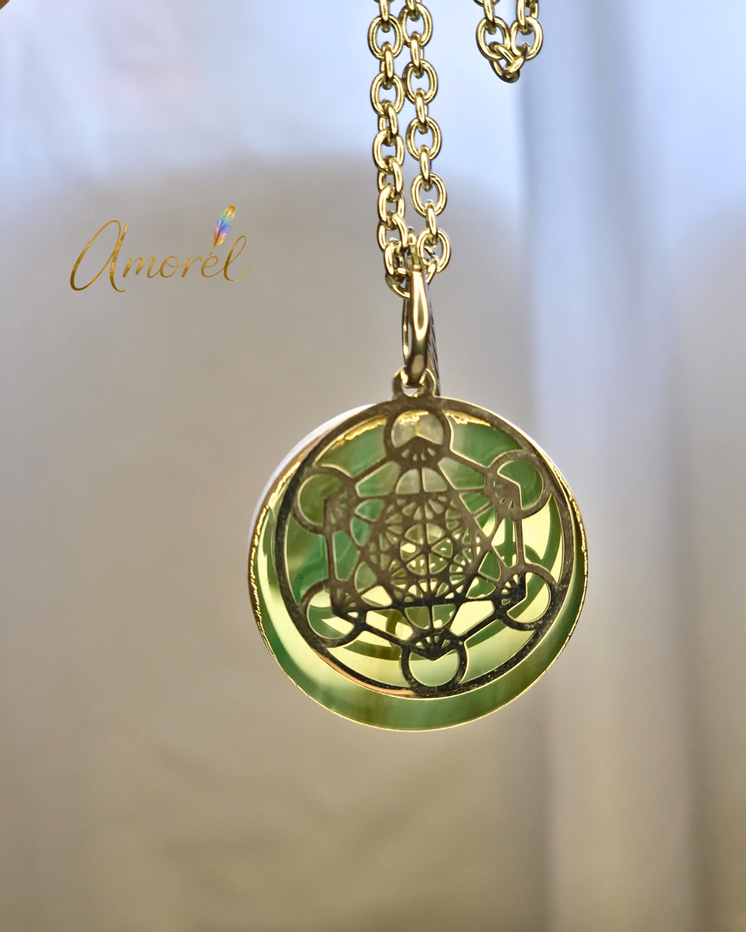 Se entrega en bolsita de tela con dije del logo de Amorél, más bolsita de friselna con el logo de Amorél, además incluye trajetita con información sobre la pieza en particular y sobre Metatrón.