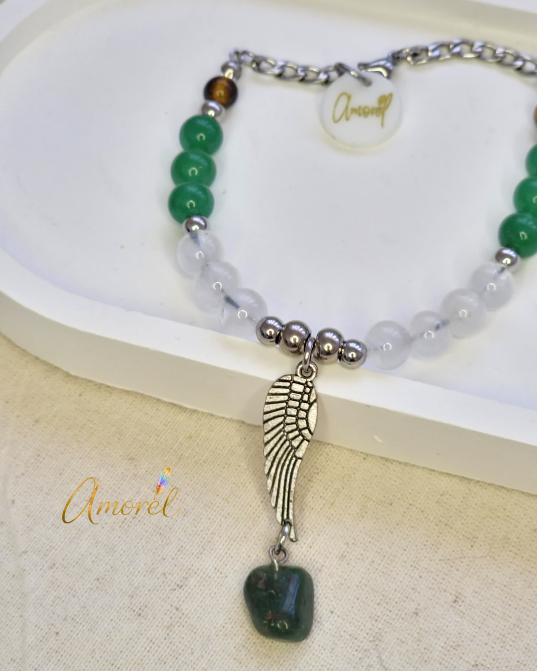Esta pulsera integra la vibración de distintos Arcángeles y la guía amorosa de los Ángeles de la Guarda, combinando energías que armonizan tanto el cuerpo físico, como el emocional y espiritual 🪶